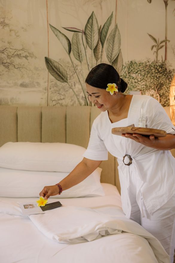 As dusk settles over Canggu, and the retreat glows in soft candlelight, Escape Haven's signature nightly turndown rituals begin - a refined, highly personalised evening practice that has become a defining hallmark of the Escape Haven experience.