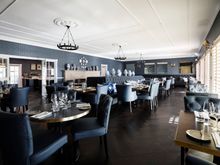 With interiors inspired by the hotel's blue and white china sets, Locavore Dining is The Sebel Kirkton Park's new fine dining restaurant. Floor to ceiling windows have been treated with white timber shutters and a dark timber floor features a chic herringbone pattern - a hero of the space.